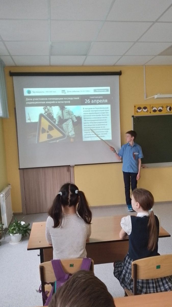 Опубликовано: 26.04.202326.04.2023 года прошёл классный час " День радиационных аварий и катастроф и памяти жертв этих аварий и катастроф."