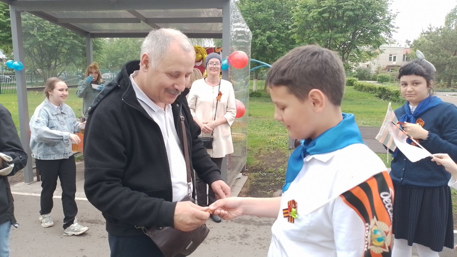 Опубликовано: 08.05.2023Тимуровский отряд "Непоседы "Набережночелнинской школы №67 для детей с ОВЗ " 6 мая принял участие в акции "Солдатская каша "и "Георгиевская ленточка "