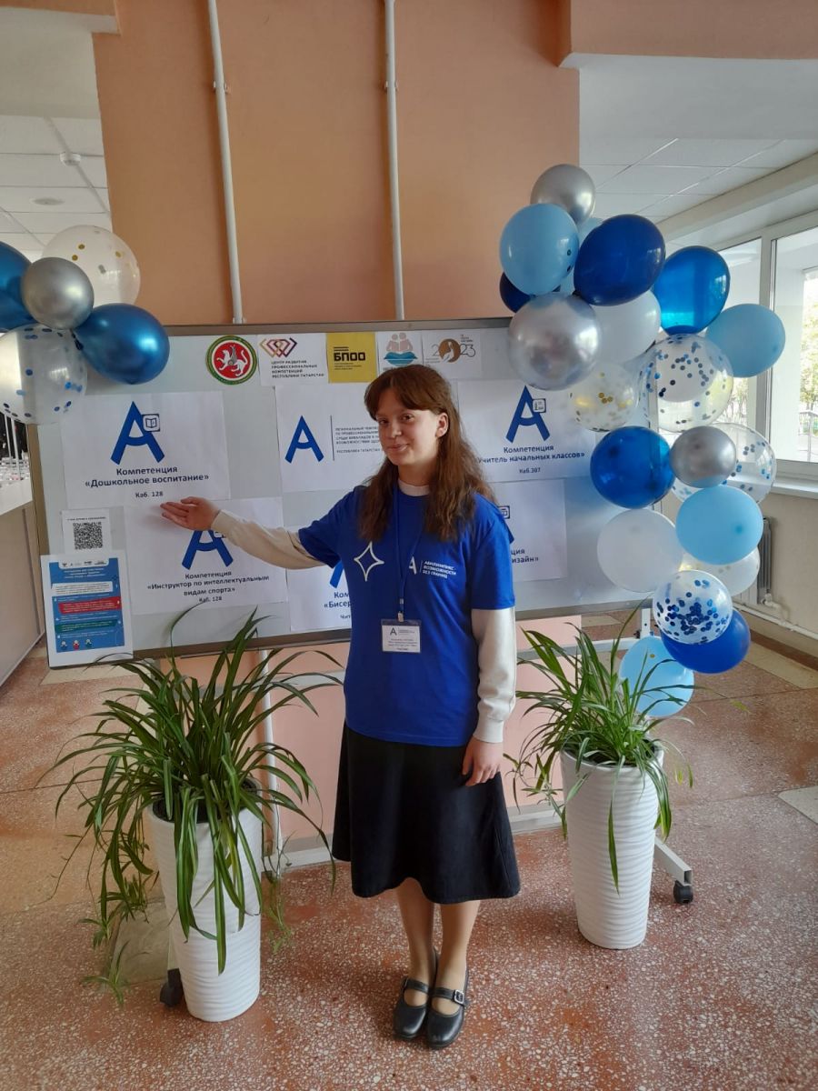 Сегодня в компетенции "Дошкольное воспитание" приняла участие Калмыкова Анастасия обучающаяся 8 А класс.