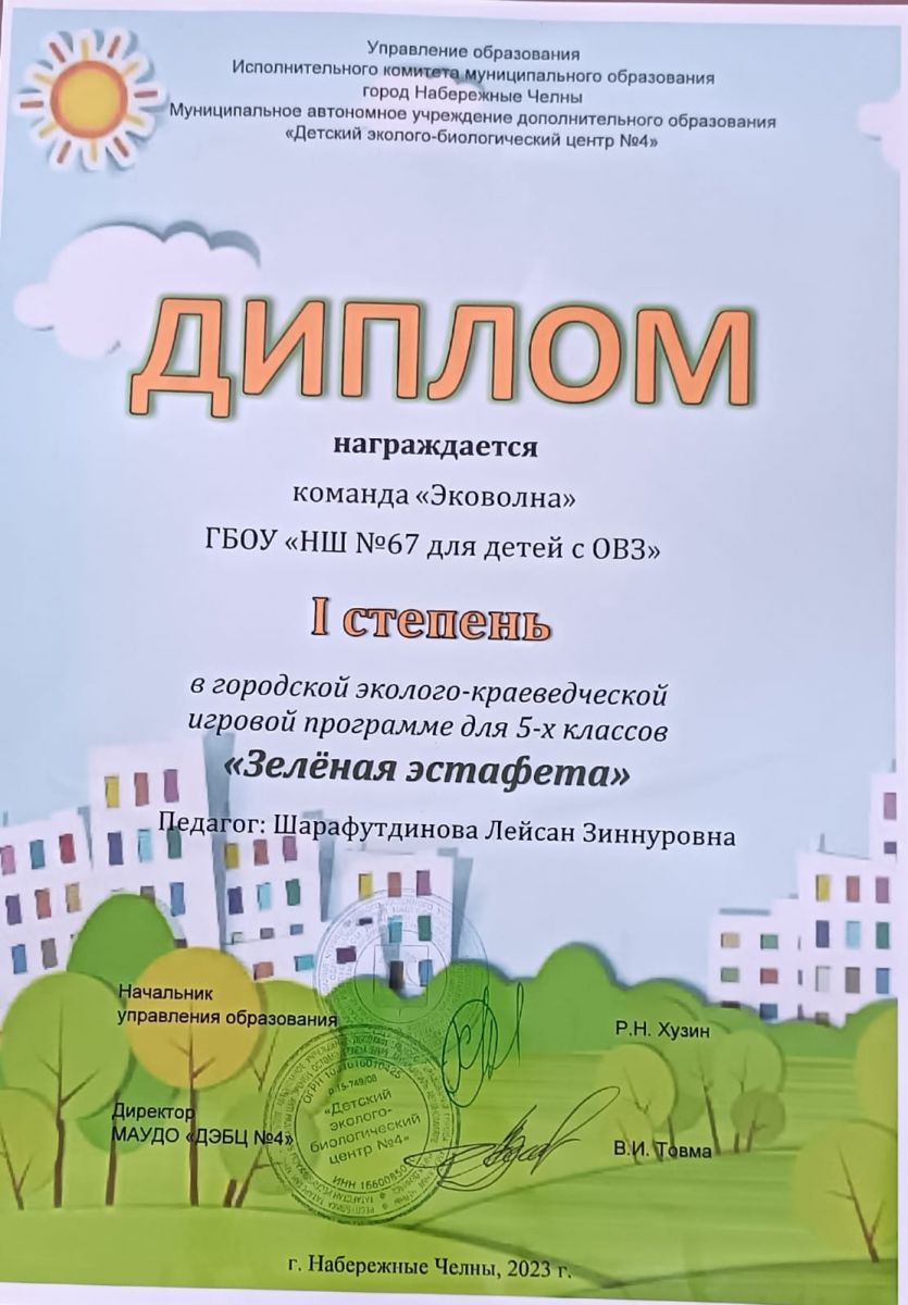 Обучающиеся нашей школы были награждены дипломом 1 степени в городской эколого-краеведческой игровой программе "Зеленая эстафета".