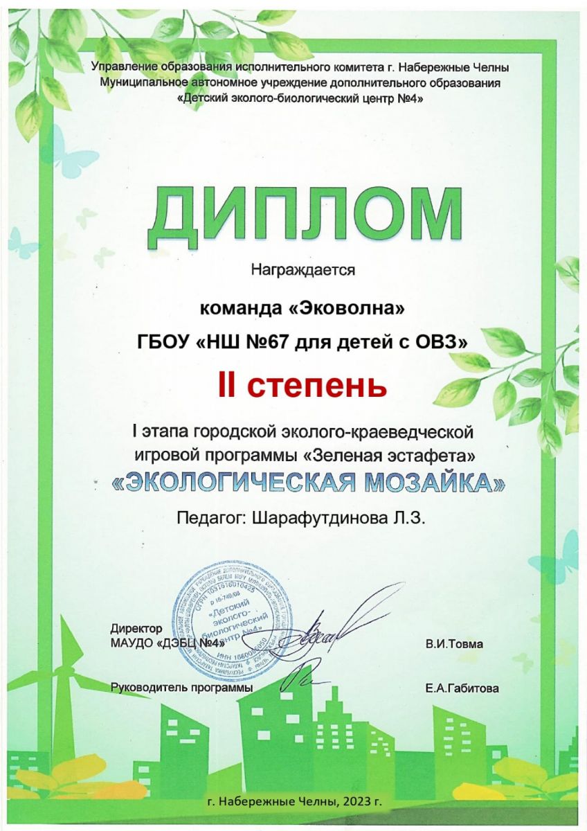 Опубликовано: 28.11.2023Команда "Эковолна" заняла 2 место в I этапе эколого-краеведческой игровой программы "Зеленая эстафета", "Экологическая мозаика".