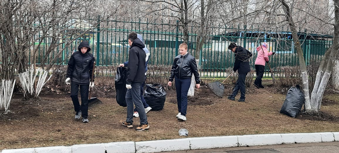 Общими усилиями педагогов и обучающихся школы приводим пришкольную территорию к порядку.