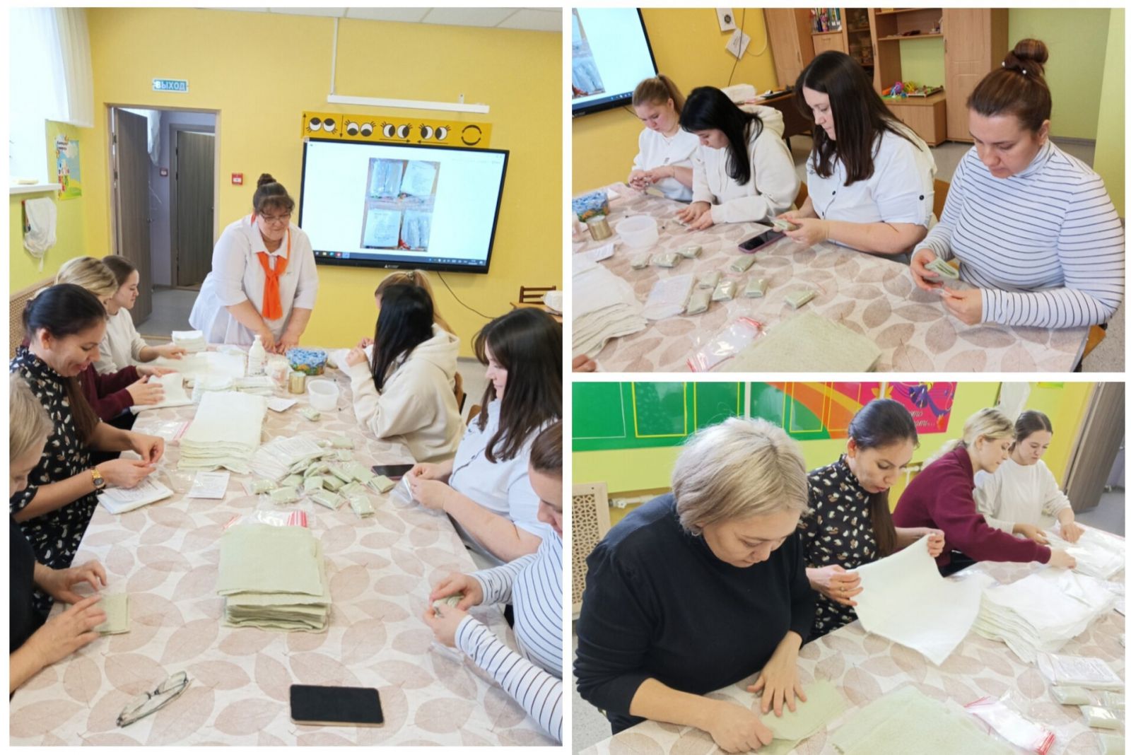 В предверии весеннего праздника мамы наших первоклашек нашли время и посетили мастер-класс по изготовлению «Сухого армейского душа» для наших защитников, в зону специальной военной операции.