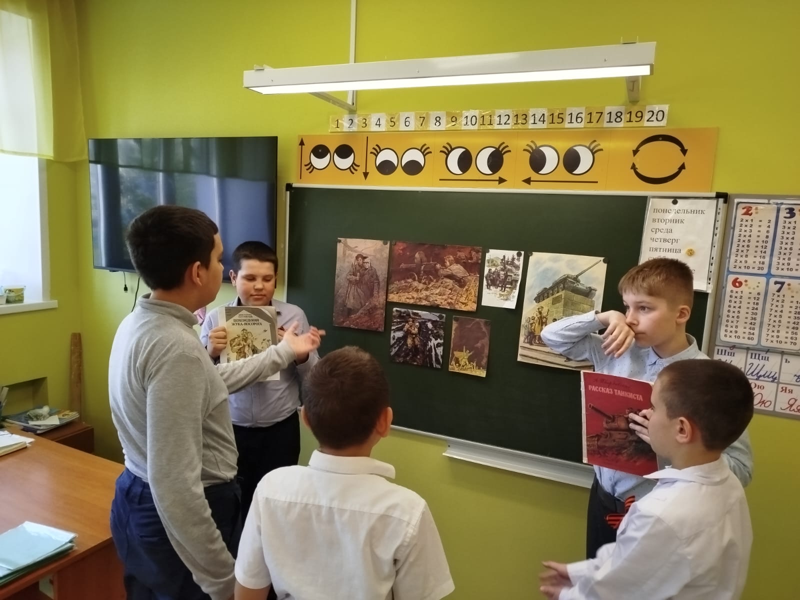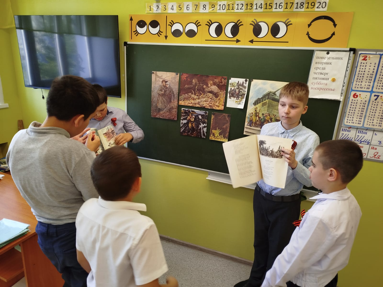 Опубликовано: 22.04.2025Во время внеурочной деятельности по направлению "Читаю в поисках смысла" Ребята 4б класса с интересом работали над рассказами и стихотворениями о ВОВ. Читали произведения, пересказывали понравившиеся отрывки, отвечали на вопросы по текстам.