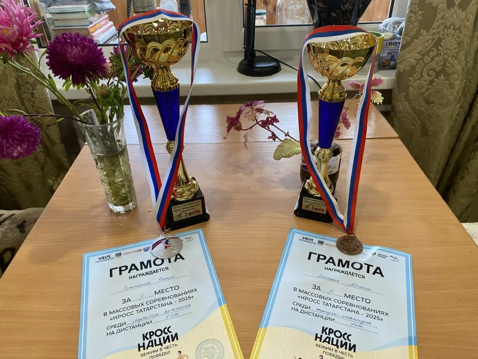 Опубликовано: 20.09.202520. 09.2025 года обучающиеся школы и учителя физической культуры приняли участие в городских соревнованиях "Кросс Татарстана 2025" Учитель физической культуры Гильманов Р. А. занял 2 место, обучающаяся 8 класса Байсина Милена заняла 3 место. Поздравляем победителей!!!
