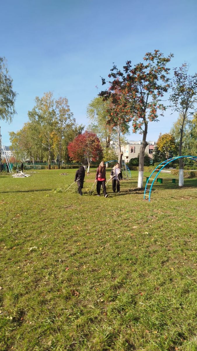Опубликовано: 02.10.2025В рамках осеннего месячника по благоустройству и уборке территории в школе организовали: