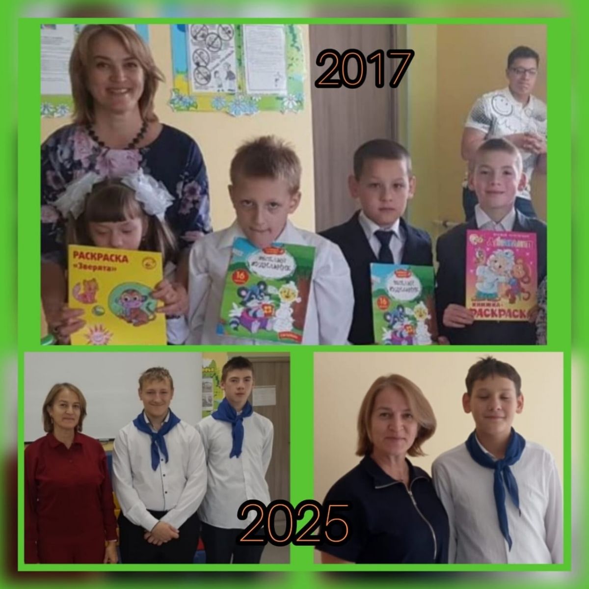 Учитель начальных классов Кобзева Раиса Ахмадулловна и тимуровцы Тищенко Ростислав, Самиков Камиль и Рахматуллин Камал