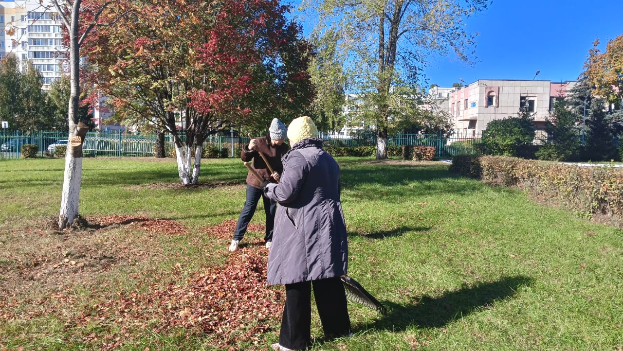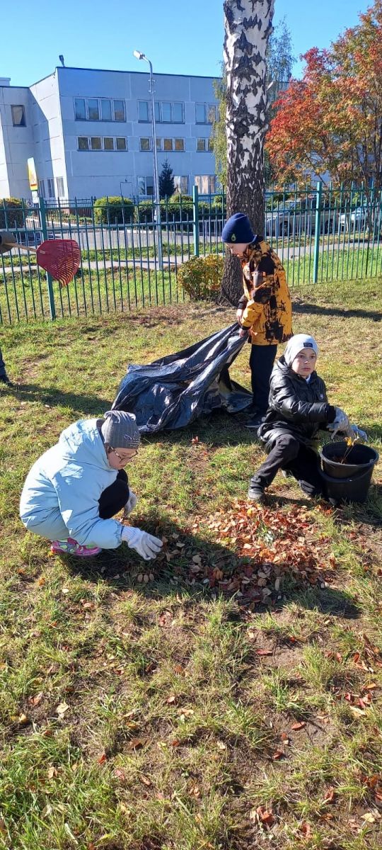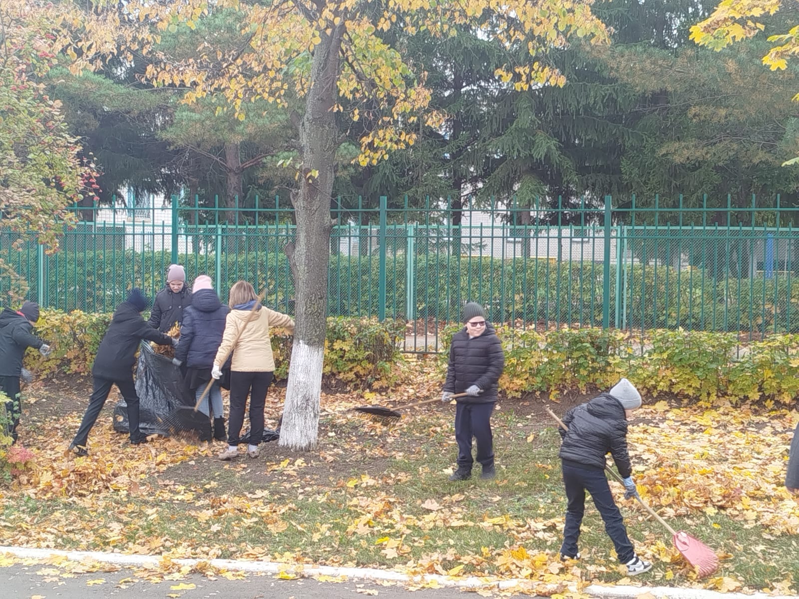 Педагоги и обучающиеся совместно приняли активное участие по уборке территории школы от опавшей листы.