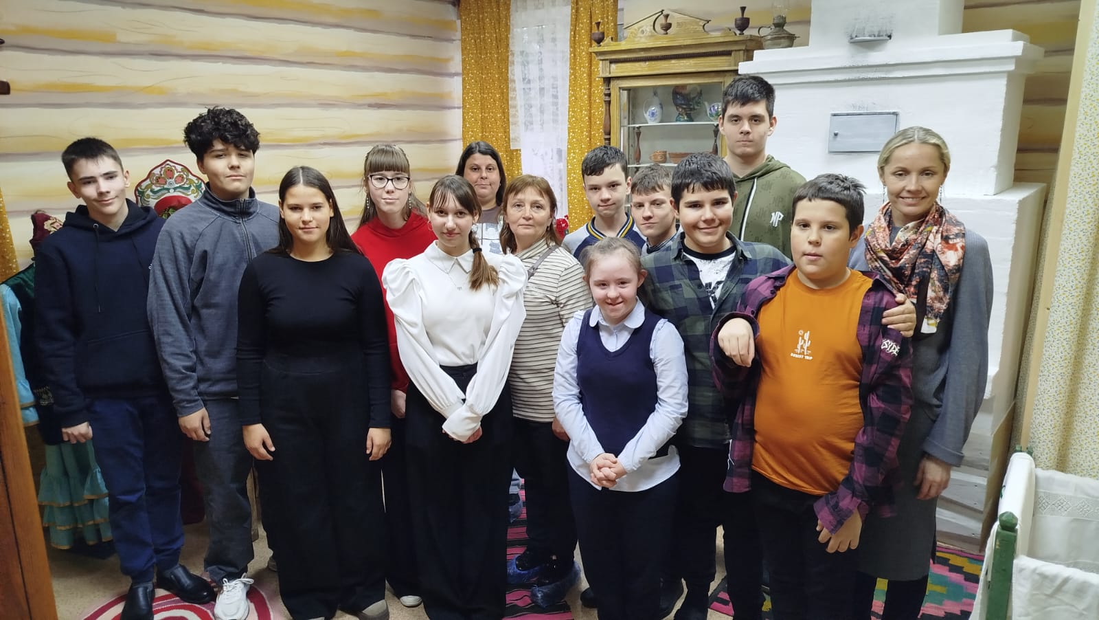 Опубликовано: 27.10.2025Обучающиеся ГБОУ "Набережночелнинской школы №67" 7а и 9б классов посетили музей "Бабушкина избушка" в городском культурном центре Эврика,по Пушкинской карте