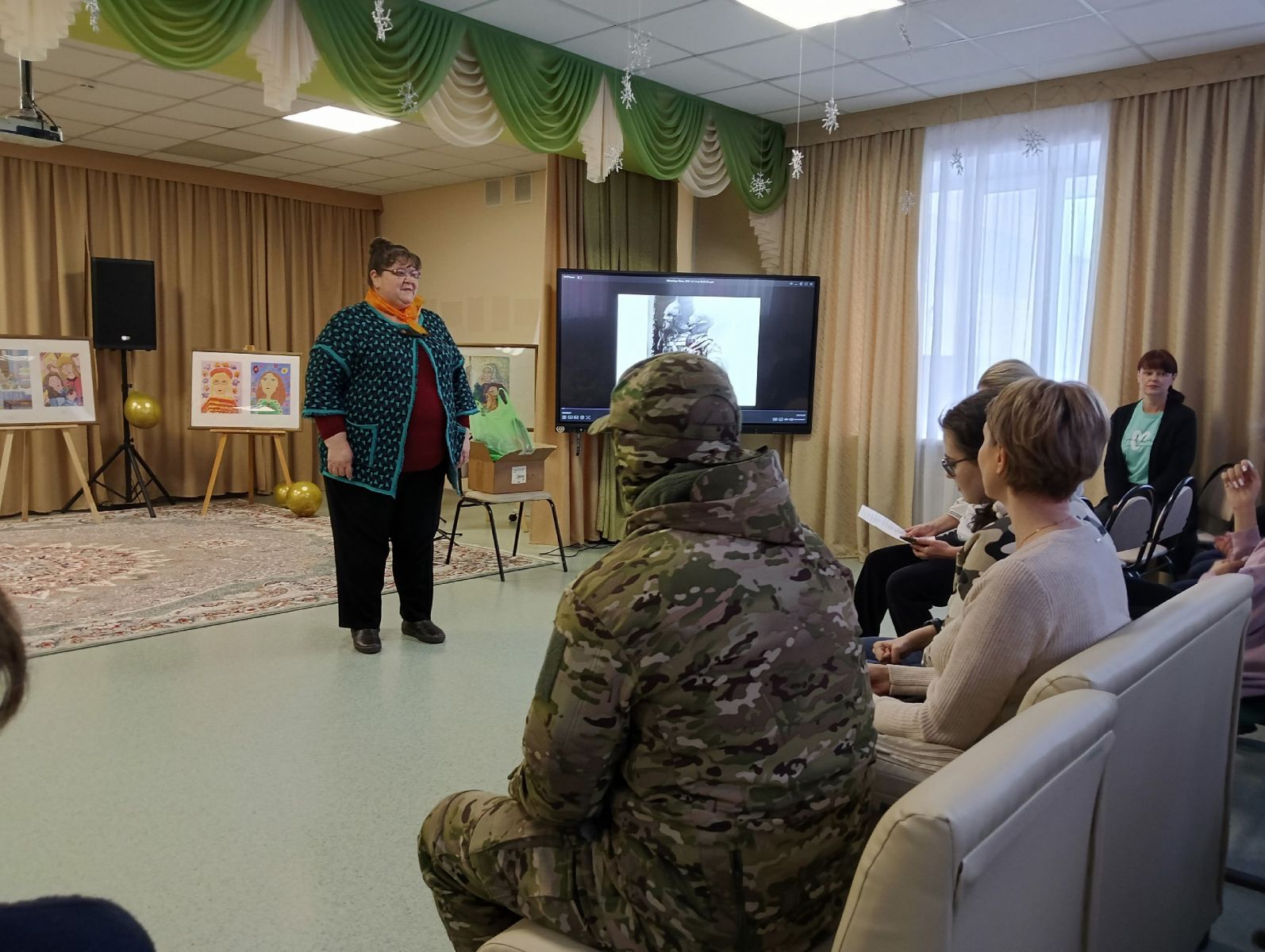 Советник директора по воспитанию Елена Владимировна Барламова поделилась с гостями опытом гуманитарной помощи обучающихся нашей школы и коллектива. А затем, нашему гостю бойцу с позывным "Каспер" вручили антидроновое одеяло, сшитое совместно с учениками 7-9 классов. Он сообщил, что такие одеяла спасают жизни солдатам в зоне специальной военной операции и поблагодарил за оказанную помощь.
