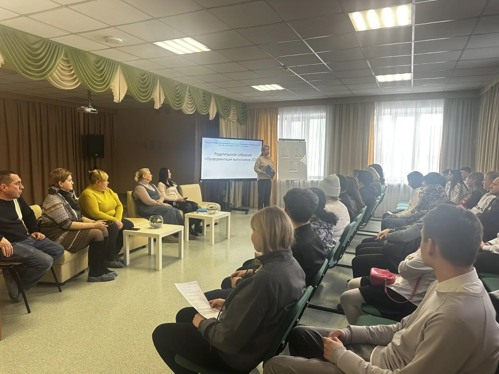 Опубликовано: 12.02.202612 февраля в ГБОУ «Набережночелнинская школа №67» проведено общеродительское собрание в выпускных классах. В рамках профориентационной работы были приглашены сотрудники Государственного автономного профессионального образовательного учреждения "Камский строительный колледж имени Е.Н. Батенчука".
