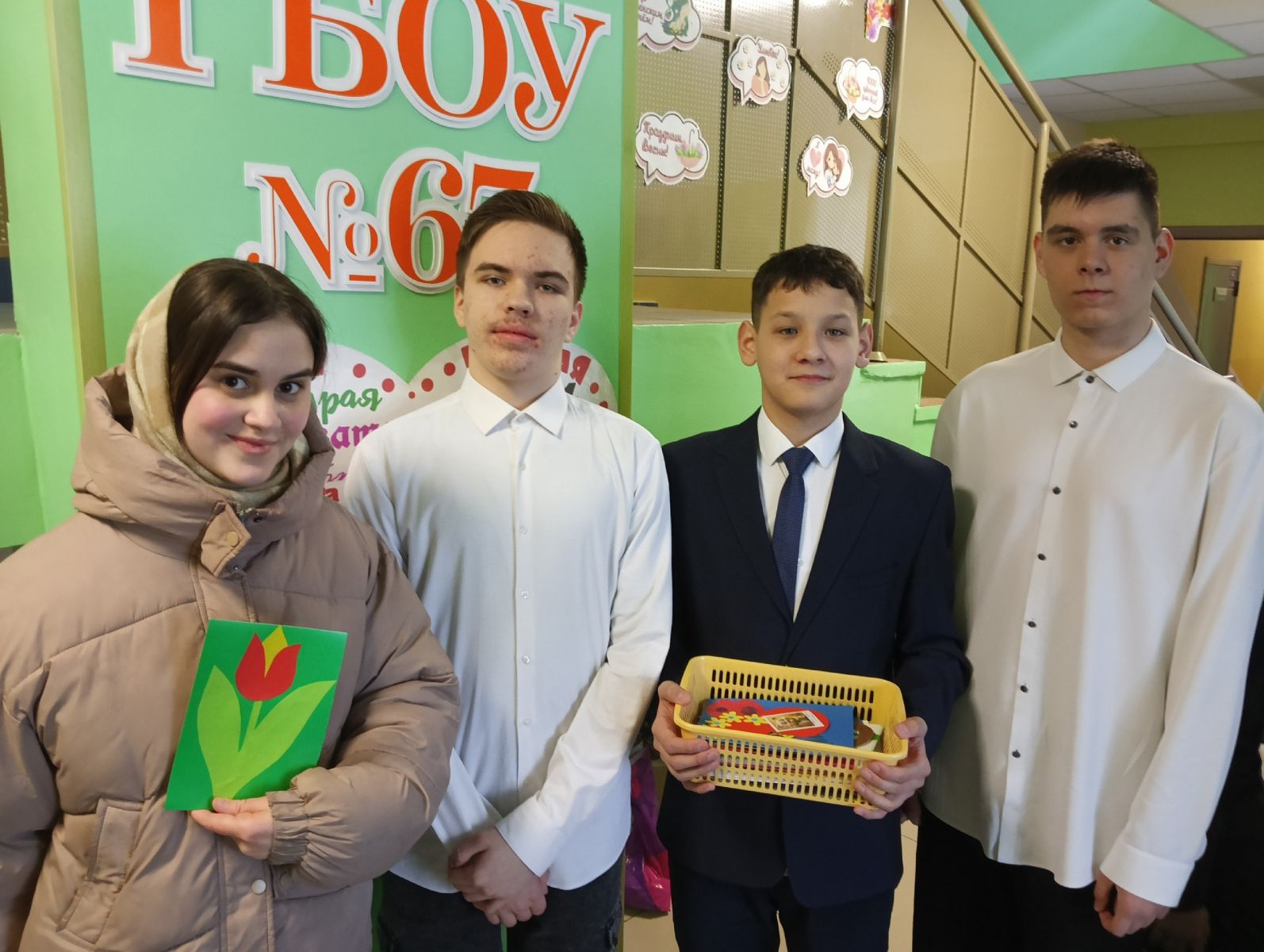 Совместно с советником директора по воспитанию Еленой Владимировной Барламовой обучающиеся 9-х классов красочно оформили хол, встречали учителей поздравительными открытками и музыкальными композициями. Поздравили самых маленьких учениц с наступающим 8 марта, подарив им сладкие подарки. Выпускниками нашей школы записано трогательное видео для своих мам.