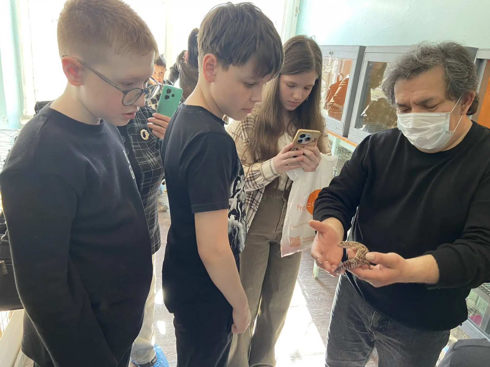 Опубликовано: 31.03.2026Сегодня учащиеся 1б, 5а, 8б классов побывали на экскурсии в МАУДО «Эколого‑биологический центр N4” — и это стало настоящим приключением для наших юных исследователей!