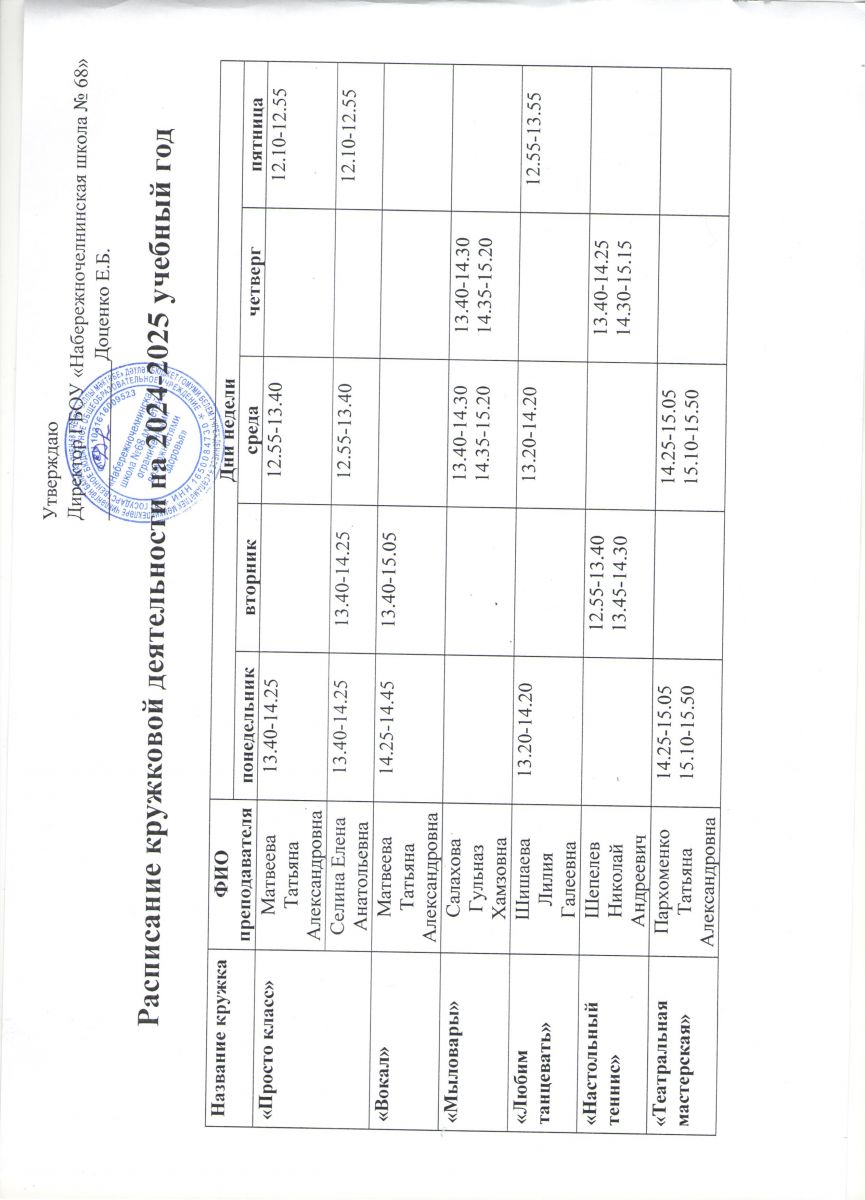 Расписание кружковой деятельности на 2024-2025 учебный год