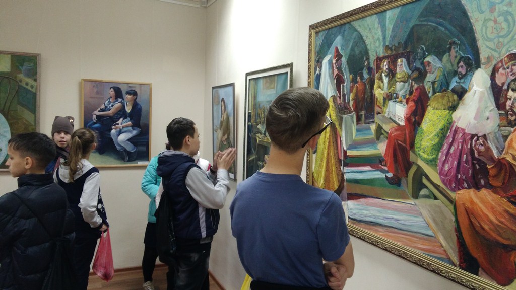 Опубликовано: 18.05.201718 мая учащиеся 6а класса с классным руководителем Халиуллиной Л.Ф. посетили Картинную галерею в рамках всероссийской акции «Ночь в музее». Дети с интересом рассматривали картины челнинских художников, любовались архитектурой города, сами создавали картинки на железных листах, порытых типографической краской.