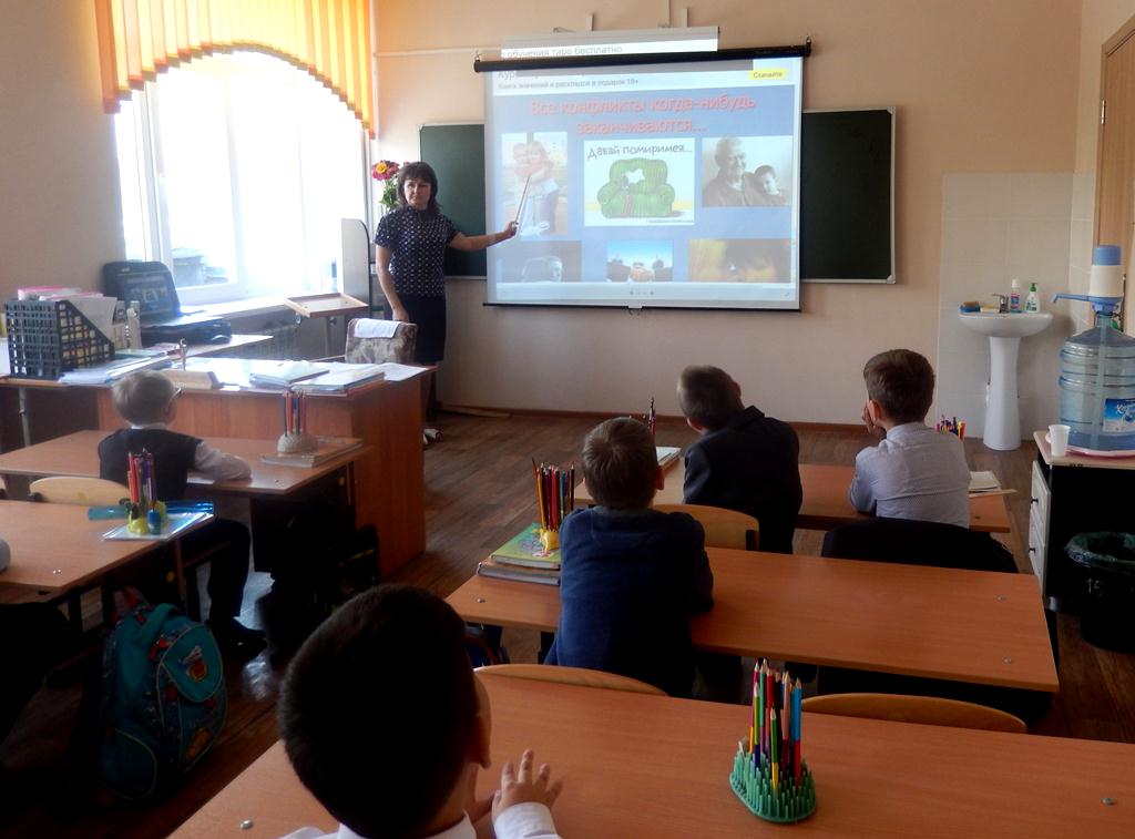 4.09.2018 года в 1-4 классах был проведен единый классный час на тему «Мир без конфликтов». Учителя вместе с детьми вспомнили трагедию Беслана. Была проведена беседа о том, как жить в мире без конфликтов.