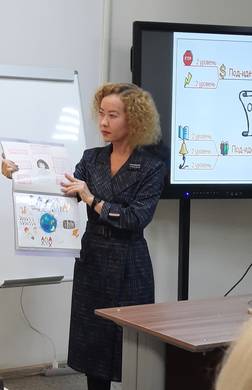 Гульназ Табрисовна поделилась опытом своей работы в секции №2 «Актуальные аспекты дефектологического образования, в том числе инклюзивное взаимодействие в образовании», проведя мастер-класс «Использование метода интеллект-карт на уроках русского языка и чтения в школе для детей с ОВЗ». Вниманию участников конференции были представлены теоретические аспекты изучаемой проблемы, далее отработаны практические навыки составления интеллект-карт. Кроме того Гульназ Табрисовна продемонстрировала дидактический и раздаточный материал по теме. Кульминацией выступления стала презентация учебно-методического пособия «Работа по развитию речи обучающихся с ОВЗ». Представленный опыт работы вызвал живой интерес у аудитории и нашёл отклик в сердцах слушателей и участников мероприятия.