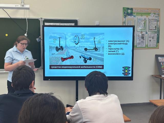 Опубликовано: 25.04.202525 апреля классным руководителем 9а класса был проведен открытый урок «Безопасность на дорогах». В ходе занятия учащиеся повторили правила пешеходов, велосипедистов и езды на самокате, составили безопасный маршрут из дома в школу на гугл карте. Приглашенным гостем стала специалист отдела пропаганды ГИБДД г. Набережные Челны Венера Михайловна Кашапова.