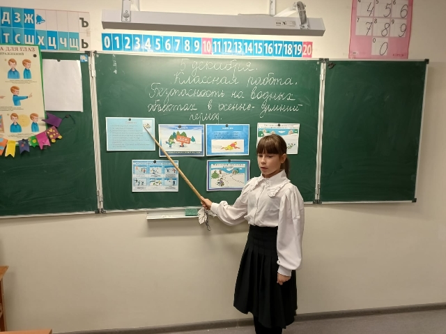 Опубликовано: 08.12.2025На основании приказа УО "Об обеспечении безопасности на водных объектах в осенне-зимний период 2025-2026 уч.года" 5 декабря для 4а и 4б классов под руководством классных руководителей Бесединой Е.В. и Нигметзяновой Г.Р. был проведён классный час "Безопасность на водных объектах в осенне-зимний период". Ребята вспомнили о правилах безопасного поведения во время ледостава.