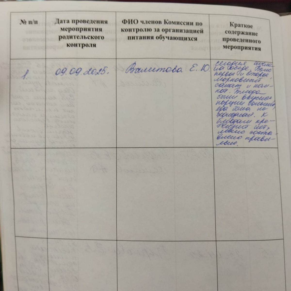 Положение об организации питания Приказ об организации питания на 2025-2026 уч.год (в т.ч. о создании бракеражной комиссии, о создании комиссии родительского контроля за питанием) Детей, нуждающихся в специальном питании по медицинским показаниям в школе нет. Приказ о создании комиссии по контролю горячего питания в школе. График питания на 2025-2026 год График посещения родителями столовой Результаты родительского контроля Фото Фото Фото Результаты анкетирования по школьному питанию |