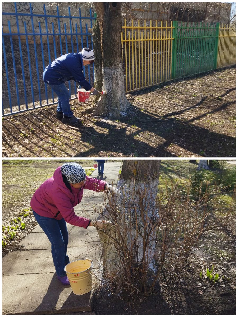 На этой неделе, в нашей школе проходит весенний субботник. В ходе субботника вычищены газоны от мусора и прошлогодней листвы, побелены деревья, кронированы кустарники.