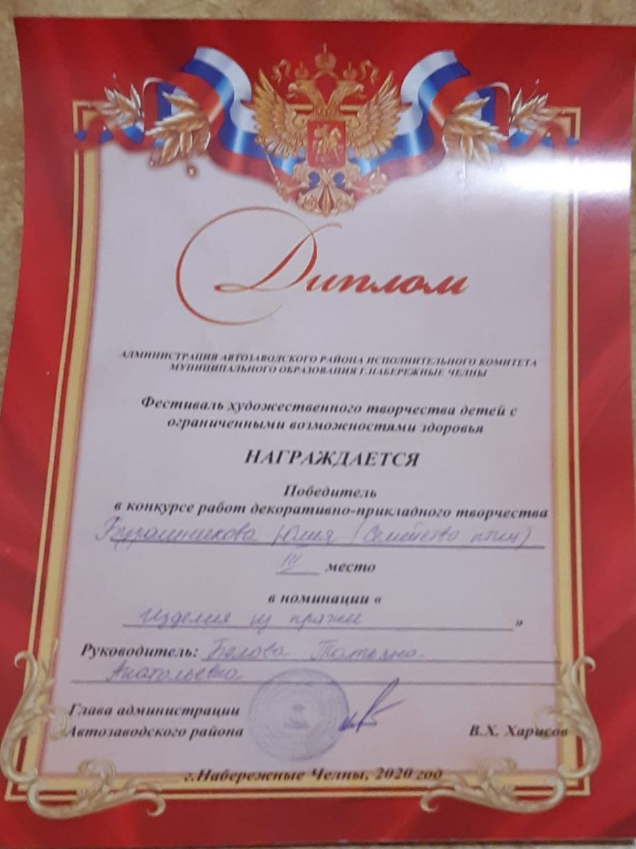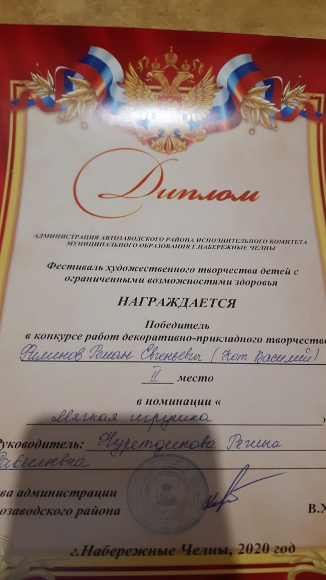 1 декабря 2020 года на базе 7 музыкальной школы прошел Фестиваль художественного творчества для детей с ОВЗ. Ученики нашей школы по различным номинациям заняли призовые места. В номинации ДПИ: Филимонов Роман- 2 место, Ломако Лера- 2 место, Бурашникова Юля- 3 место. В номинации Инструментальное исполнение: Бычков Максим- 3 место. В номинации Вокал: Бадыкова Виоллета и Гайфуллина Карина- 2 место. В номинации художественное слово: Старикова Маша- 2 место, Арестав Руслан- 2 место. Молодцы!