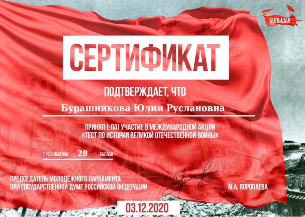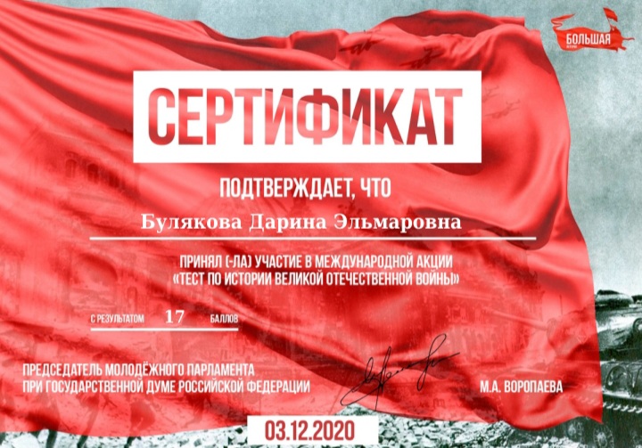 Международной акции «Тест по истории Великой Отечественной войны» 2020 04.12.2020