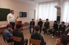 В рамках профориентации в школе состоялась встреча с выпускником Субботиным Леонидом, который обучается в КГЭУ. Он рассказывал старшеклассникам о том, как поступить и учиться в ВУЗе.