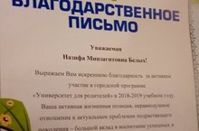 В течение 2018/2019 уч.года наша родительница 1 класса Белых Н.М. посещала Университет для родителей, где получила Благодарственное письмо за активное посещение.