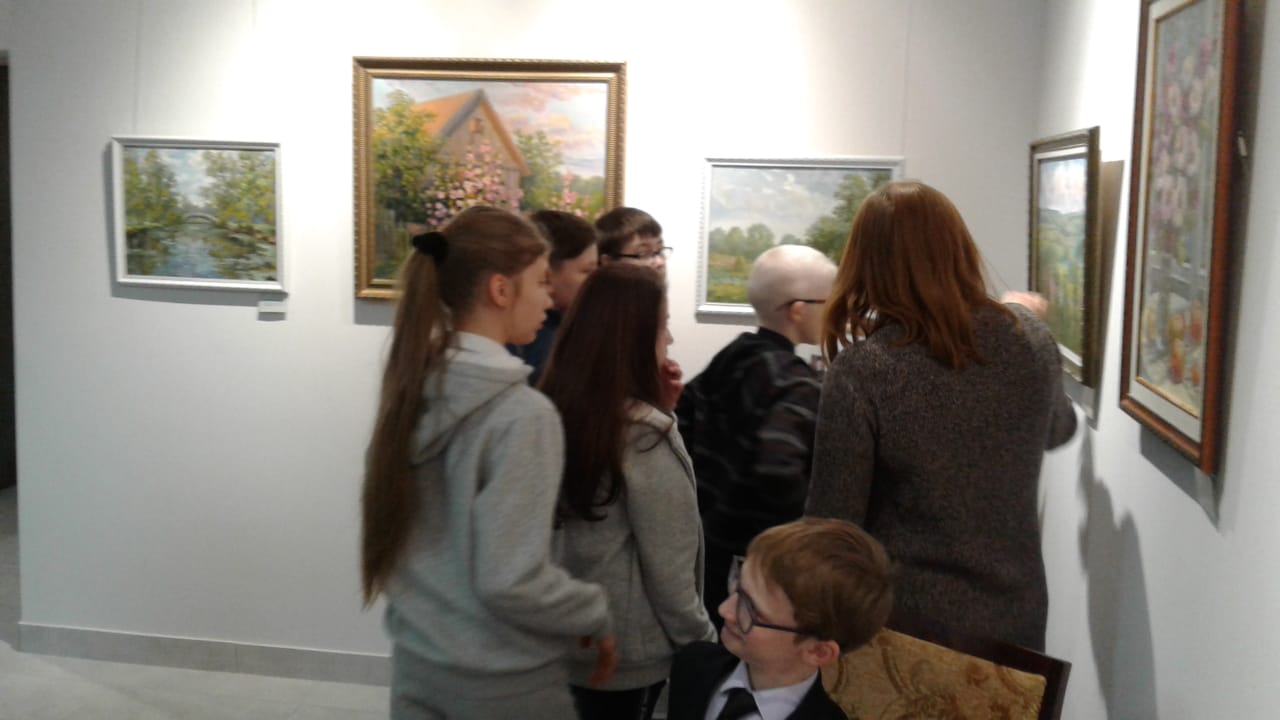 Сегодня учащиеся 5,6,7 классов посетили картинную галерею. Учащимся очень понравилась выставка картин М.Фадеевой.