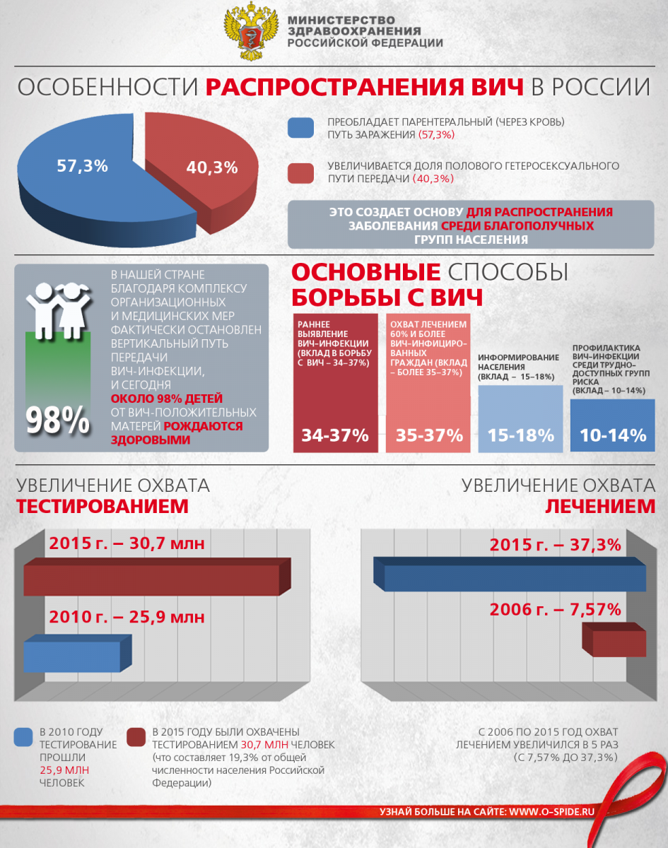Вирус иммунодефицита человека не передается в быту. Близкие, друзья, соседи и гости ВИЧ-позитивных не рискуют заразиться при условии соблюдения обыкновенных правил гигиены. ВИЧ передается только через кровь, сперму, влагалищные выделения и грудное молоко. Другие выделения организма – пот, слюна, моча, кал – не создают риска передачи ВИЧ-инфекции.
