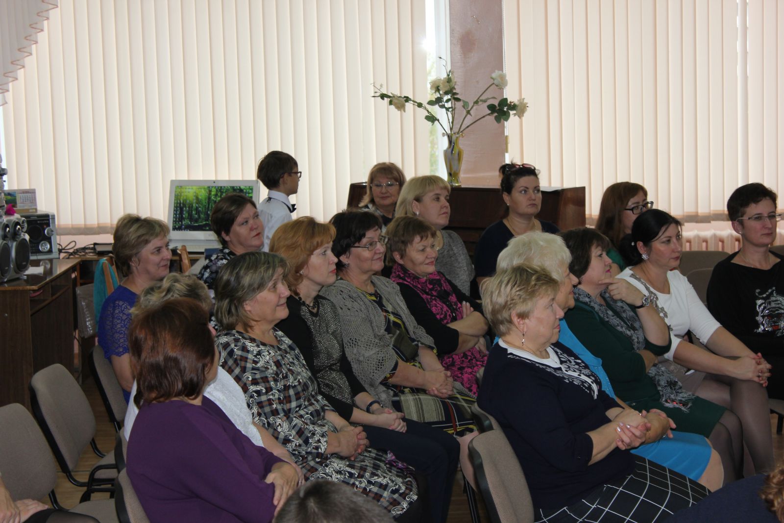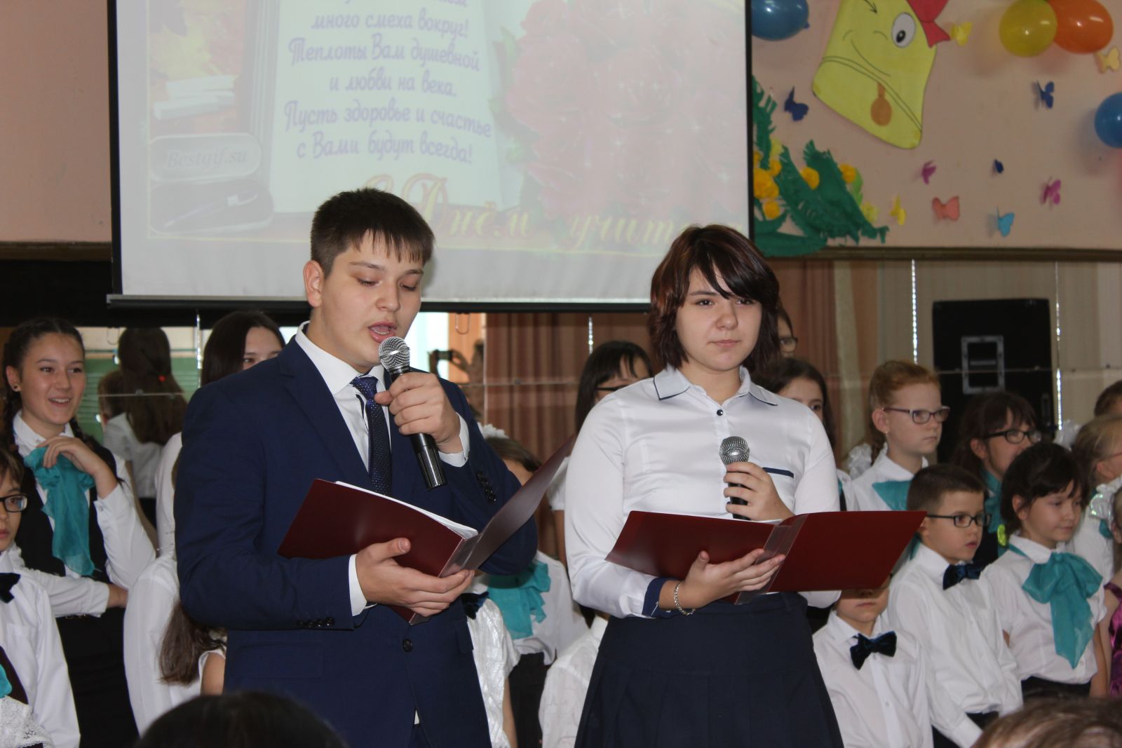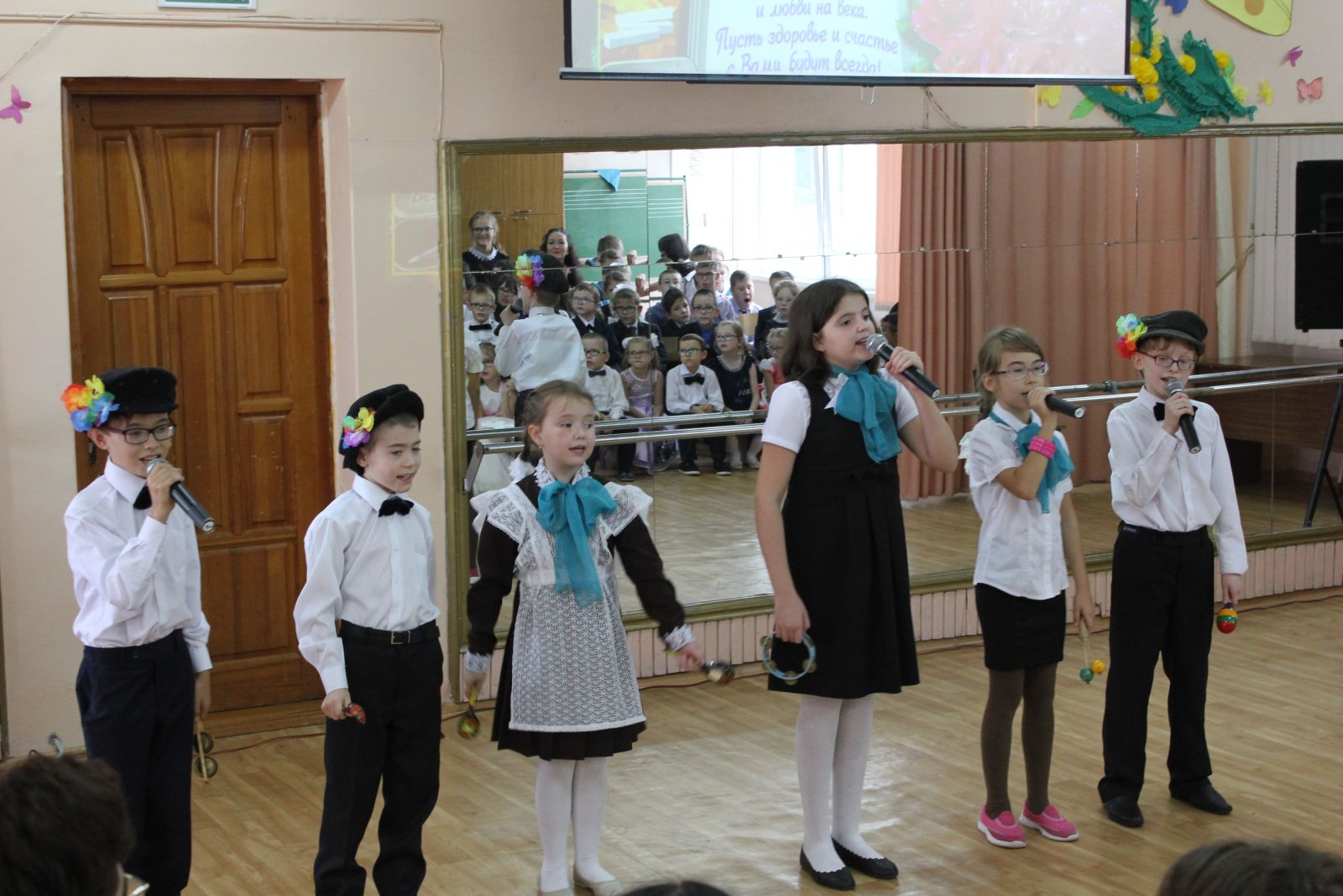 7 октября в музыкальном зале школы прошло торжественное праздничное мероприятие, посвященное Дню Учителя. Концерт начался с музыкальной и танцевальной композиций учеников и продолжился частушками и презентацией с поздравлениями всех педагогов. Праздник прошёл энергично и весело. Спасибо!