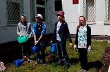 Ребята нашей школы несмотря на то, что каникулы, вышли работать на участок. Они подкапывают кустарники, поливают, убирают сорняки. Удачи вам!