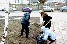 Начало весенней уборки школьного участка 14.04.2014
