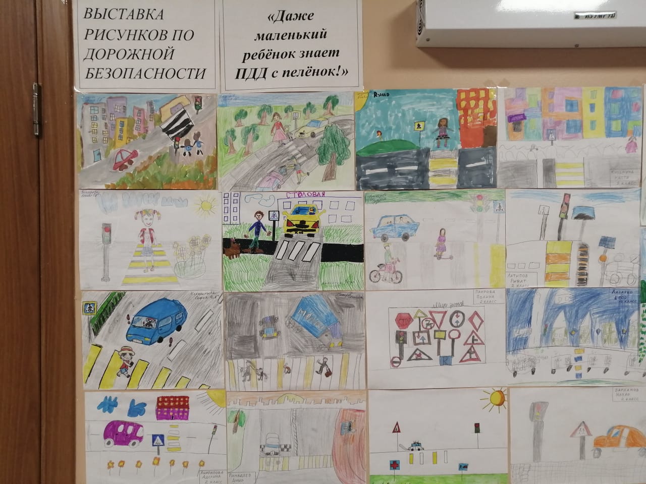 В рамках акции "Внимание дети" прошёл конкурс рисунков среди 1-4 классов "Знай правила дорожной безопасности" . Лучшие работы выставлены в холле.