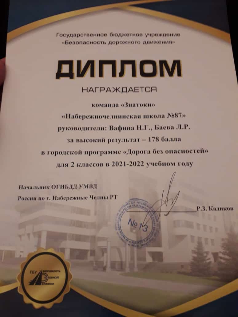 16 мая прошло закрытие городской программы "Дорога без опасностей" команда "Знатоки" учеников 2 класса были награждены дипломом за высокий результат.