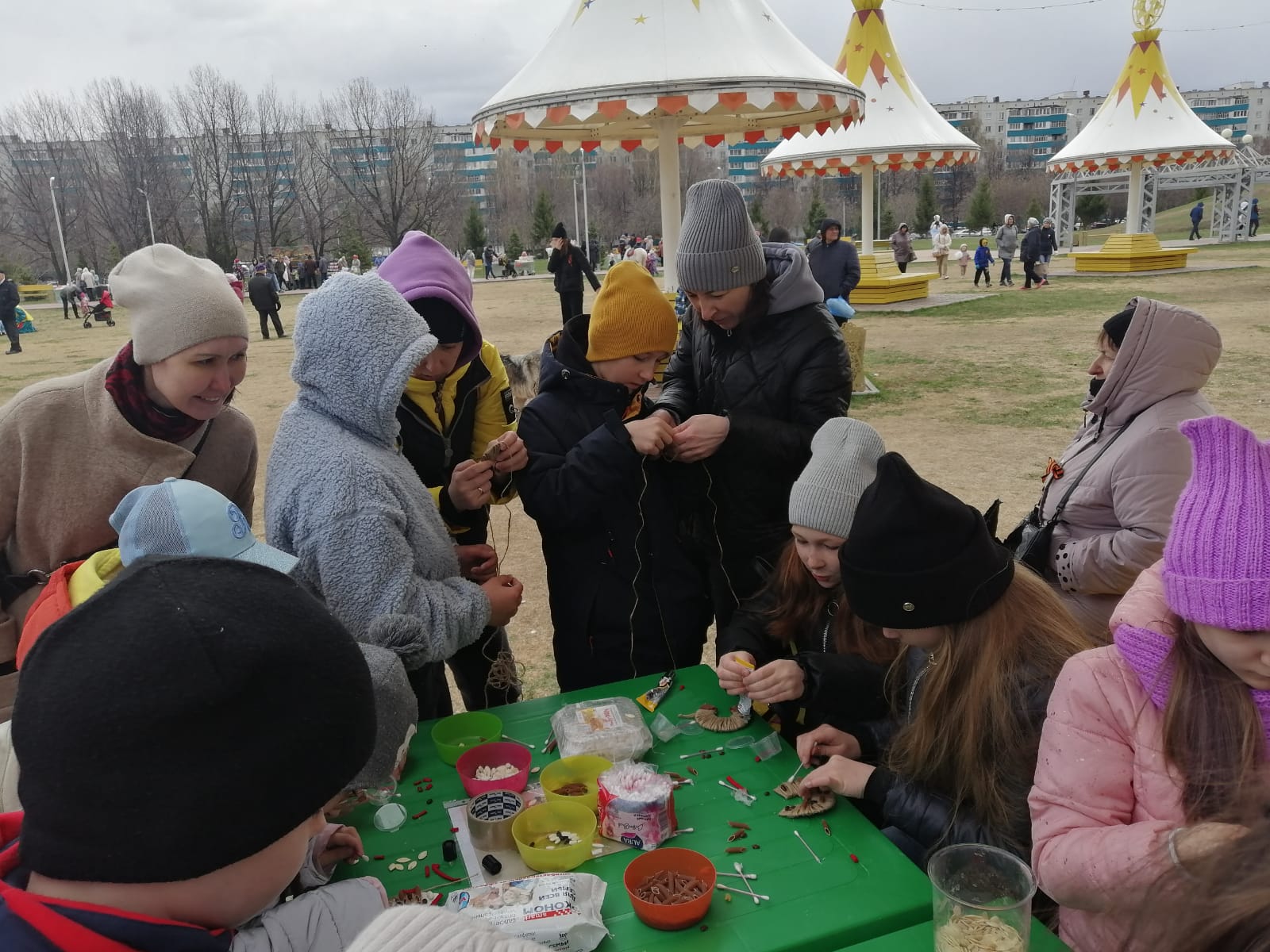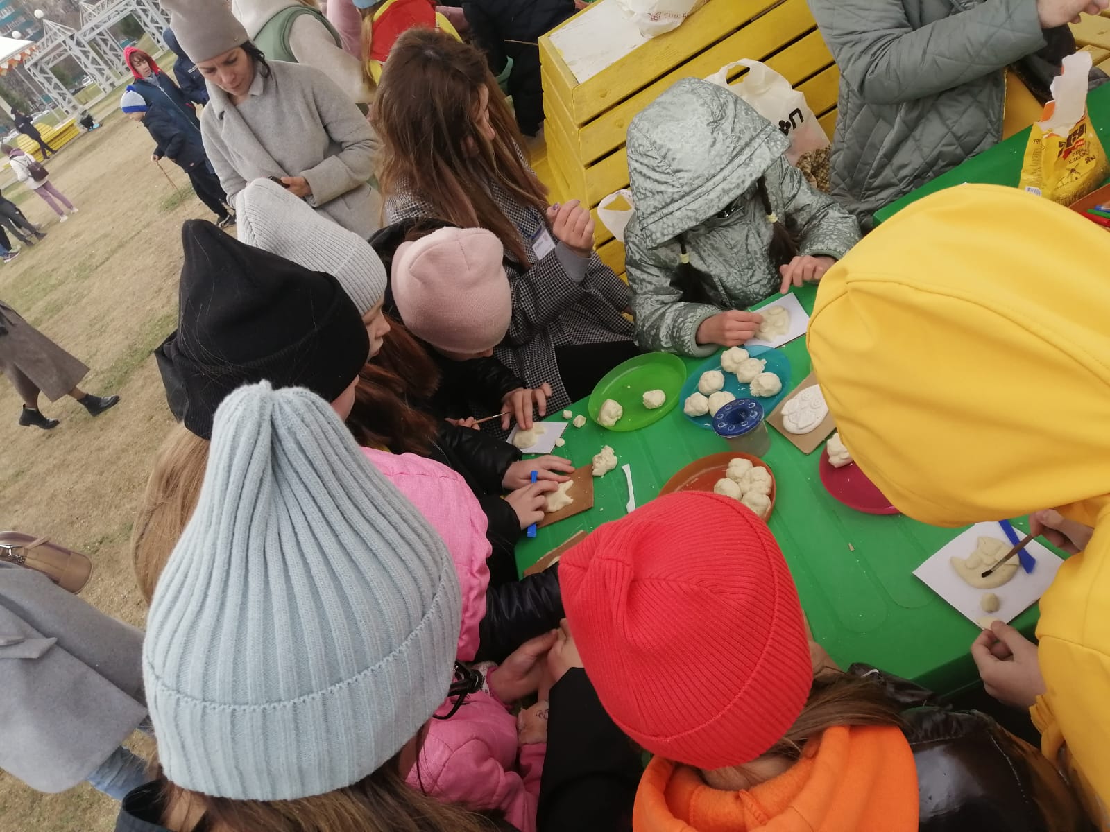 Учащиеся и родители приняли активное участие в мастер-классах в Парке Победы. Было очень здорово, праздничная атмосфера, конкурсы, призы, алладьи, конфеты, шары!!!