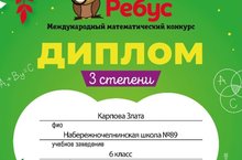 Учащиеся 6 класса приняли участие в Международном математическом конкурсе "Ребус" и заняли призовые места. Молодцы!!!