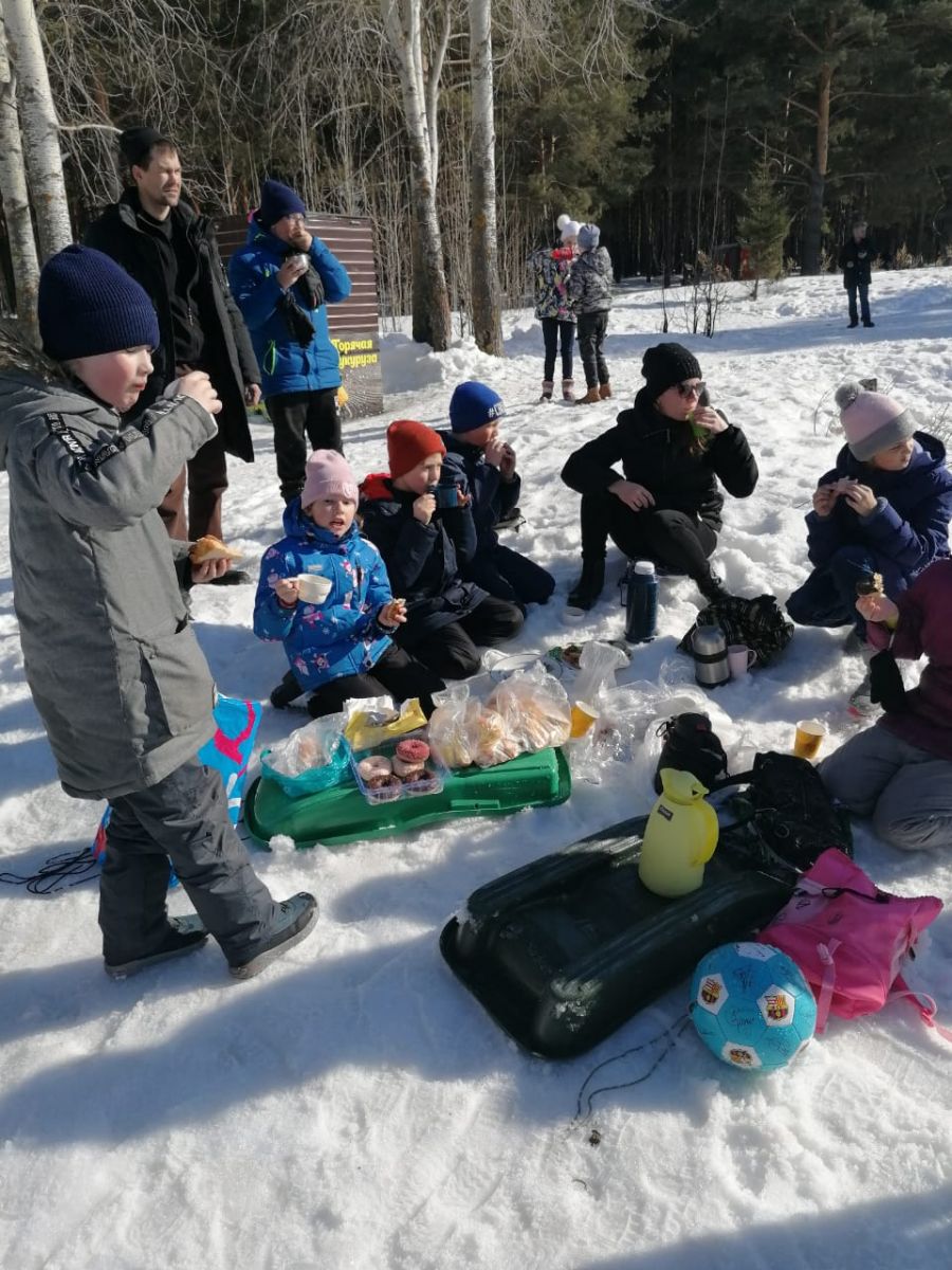 28 марта ученики 3 класса вместе с родителями вышли на воскресную прогулку в парк "Прибрежный ", организовали катание на ледянках и чаепитие на свежем воздухе.