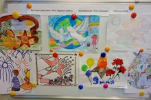 Выставка детских рисунков совместно с родителями «Под мирным небом», посвященная Победе в ВОВ. Беседа с детьми о героических подвигах в годы ВОВ -
