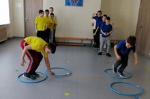 Команды соревновались в бросках мяча в корзину, в лазании по гимнастической скамейке, бегали по "болоту". Ребята показали хорошую спортивную подготовку. -