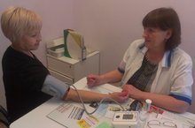 В рамках Дня охраны труда педагоги прошли контроль артериального давления и уровня сахара крови.