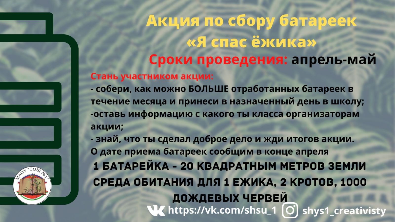 Акция по сбору батареек "Я спас ежика" 09.04.2020