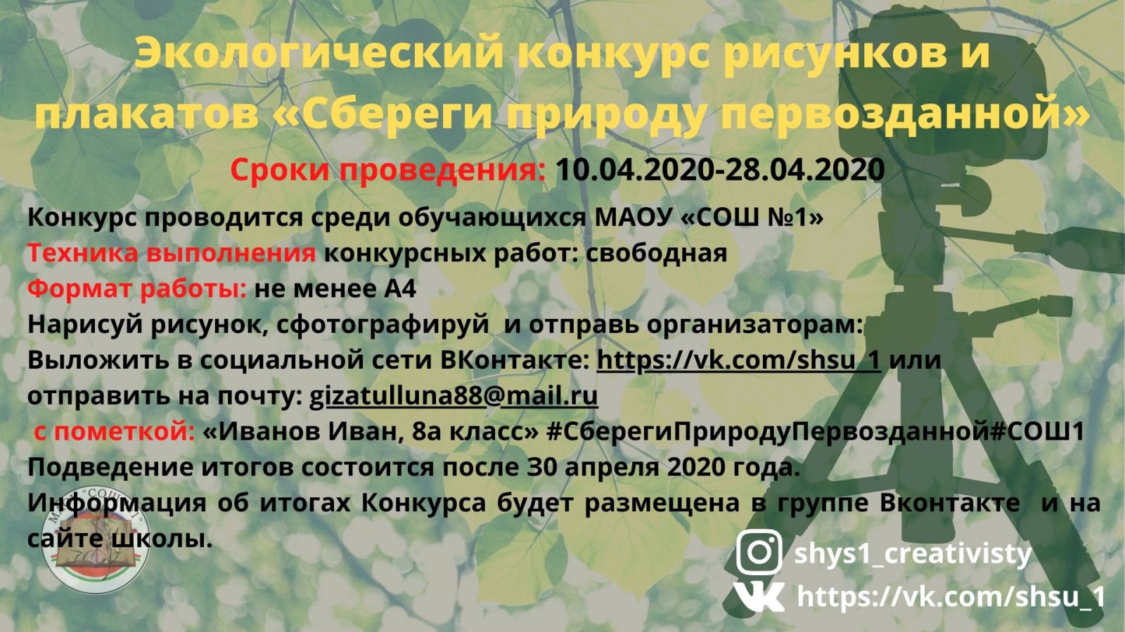 Экологический конкурс рисунков и плакатов "Сбереги природу первозданной" 09.04.2020