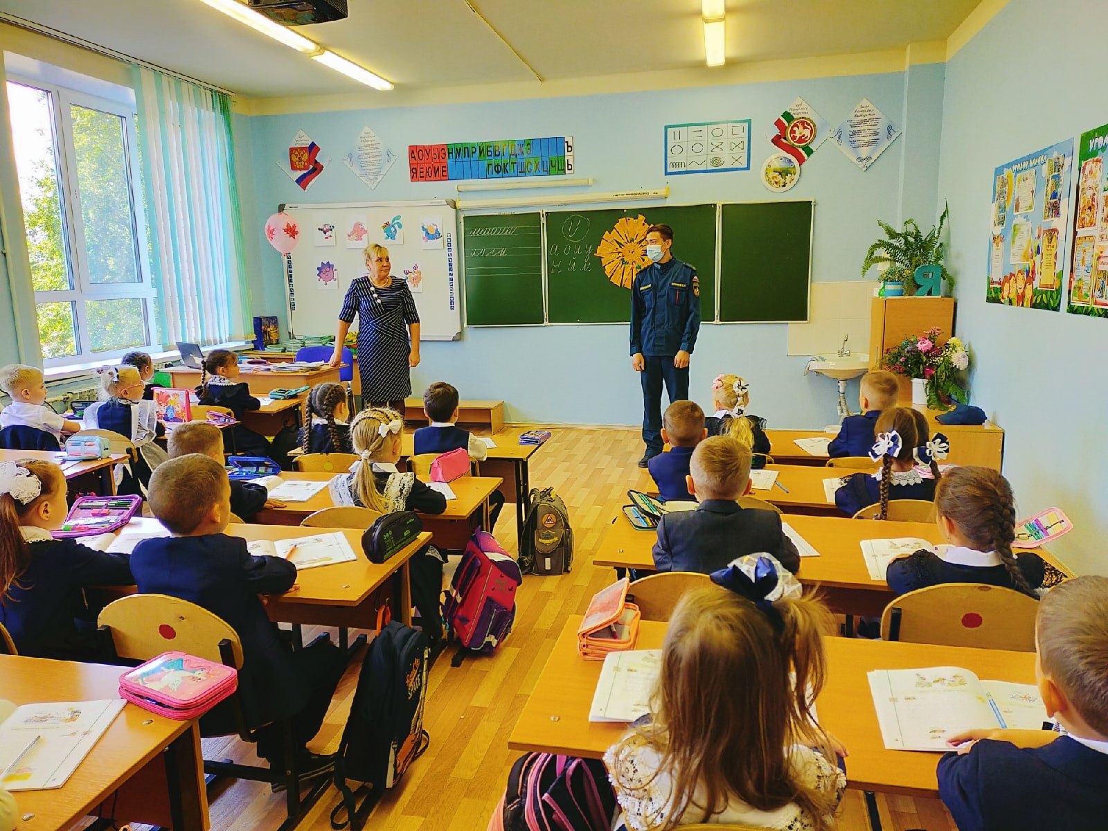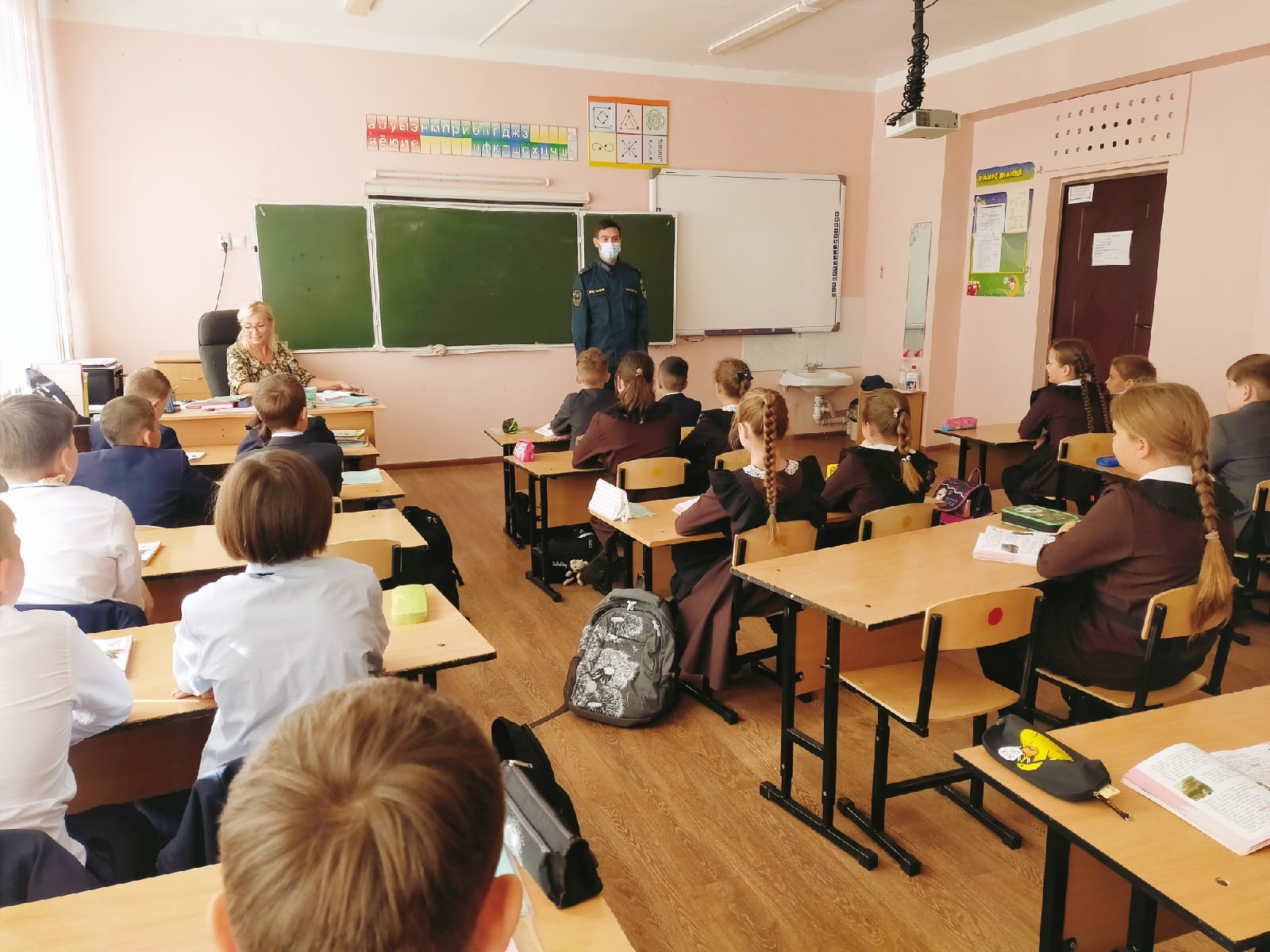 Опубликовано: 05.09.2022В рамках месячника безопасности детей для обучающихся 1-4 классов проведены профилактические лекции по теме «Правила поведения в школе во время пожара. Наша безопасность». Лекции проводил начальник караула 55 ПСЧ ГУ МЧС России по Республике Татарстан Шумнов Г.С. Глеб Сергеевич рассказал о причинах возникновения пожара и об основах элементарных знаний по предотвращению чрезвычайных ситуаций и пожаров.