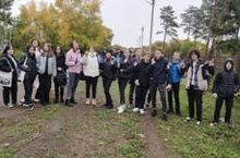Учащиеся школы 9В класса средней школы № 10 произвели уборку по территории позле Памятника Вечного огня.