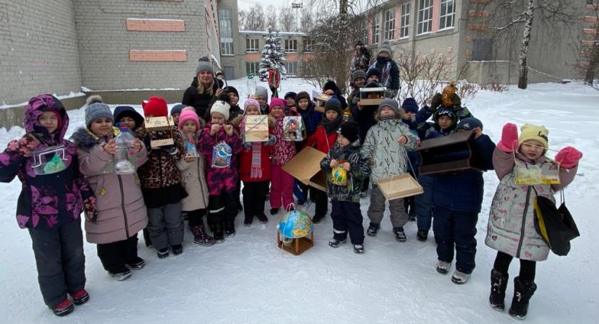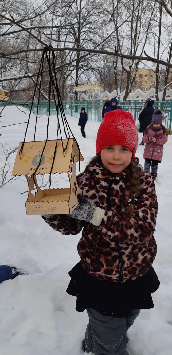 Опубликовано: 29.01.2021Учащиеся 1д класса изготовили совместно с родителями кормушки. Все кормушки повесили на школьном дворе. Ежедневно первоклассники подкармливают птиц, подсыпая зерна и кусочки хлеба в изготовленные кормушки.