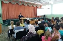 Сегодня в нашей школе прошла встреча с трудовыми коллективами ОУ, ДОУ, УДО. На встрече с докладом об итогах социально-экономического развития города за I полугодие 2016 года выступил Мэр города Набережные Челны Магдеев Н.Г. Также на встрече присутствовал начальник управления образования и по делам молодежи Харисов В.Х. Присутствующие на встрече педагоги задавали интересующие их вопросы, ответы на вопросы были даны сразу. Наиль Гамбарович в свою очередь поблагодарил собравшихся за участие во встрече.