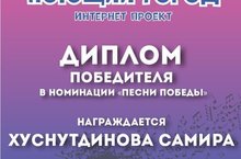 Поздравляем с Победой в Интернет проекте "Поющий город" - ученицу 3 "А" класса - Хуснутдинову Самиру.