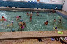 Сегодня ребята 1 ,2,3 отрядов пришкольного лагеря "Маленькая страна"посетили плавательный бассейн.Плавание-один из самых замечательных видов спорта.Во время плавания работают все группы мышц,формируется красивая фигура. Перед началом купания был проведён инструктаж по технике безопасности на воде. Дети плавали,играли с мячиком,весело проводили время. Ребята получили огромное удовольствие и заряд хорошего настроения.Бүген "Кечкенә ил"мәктәп яны лагереның 1 ,2,3 нче отрядлары йөзү бассейнында булды .Йөзү-иң искиткеч спорт төрләренең берсе.Йөзү вакытында барлык мускул төркемнәре эшли, матур фигура формалаша. Су коену алдыннан суда куркынычсызлык техникасы буенча инструктаж үткәрелгән. Балалар йөзделәр,туп белән уйнадылар, күңелле вакыт үткәрделәр. Егетләр бик күңелле һәм яхшы кәефле булдылар.